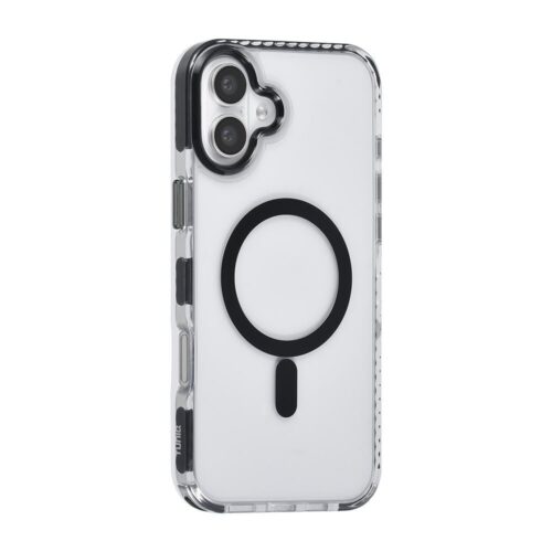 Un aspect distinctiv al acestei huse consta in detaliile colorate, cum ar fi butoanele, marginile camerei si, in mod special, cercul Magsafe. Cercul Magsafe este realizat din metal, conferindu-i o rezistenta deosebita si un aspect elegant. Aceasta caracteristica speciala nu numai ca adauga un plus de stil, dar si imbunatateste puterea de fixare a accesorilor Magsafe, asigurand o conexiune ferma si stabila.