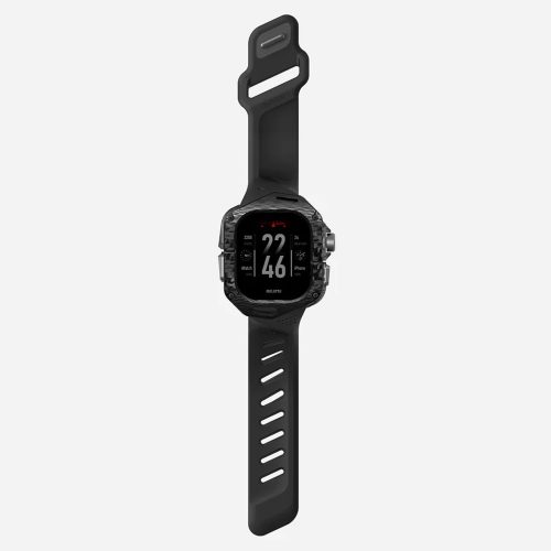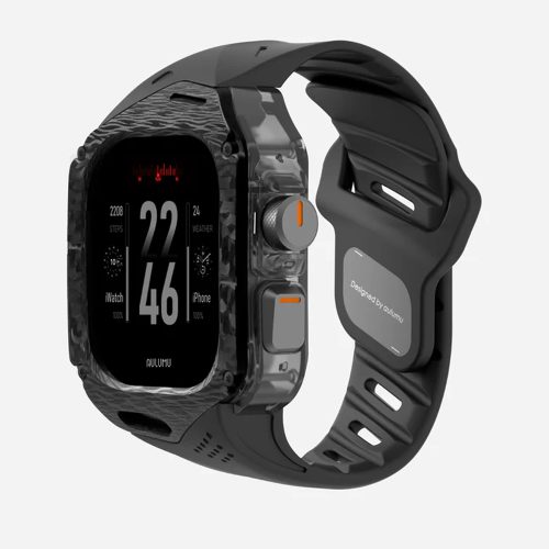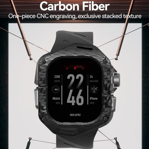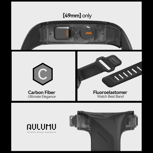 Set Husa si Curea pentru Apple Watch Ultra 1/2/3, Aulumu A01, din Fibra de carbon si cauciuc, Rezistenta la socuri, Butoane metalice tactile, Protectie 360°, Banda FKM elastica si durabila, Rezistenta la apa si transpiratie, Design premium, Negru