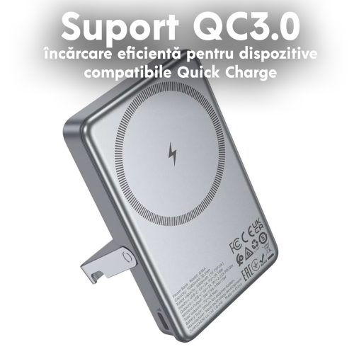 Incarcare wireless MagSafe 5000mAh – fixare magnetica sigura si alimentare comoda pentru iPhone‑urile compatibile.