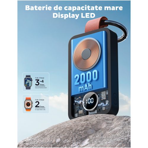 Baterie integrata 2000 mAh – functioneaza si ca mini power bank, perfect pentru situatii de urgenta.