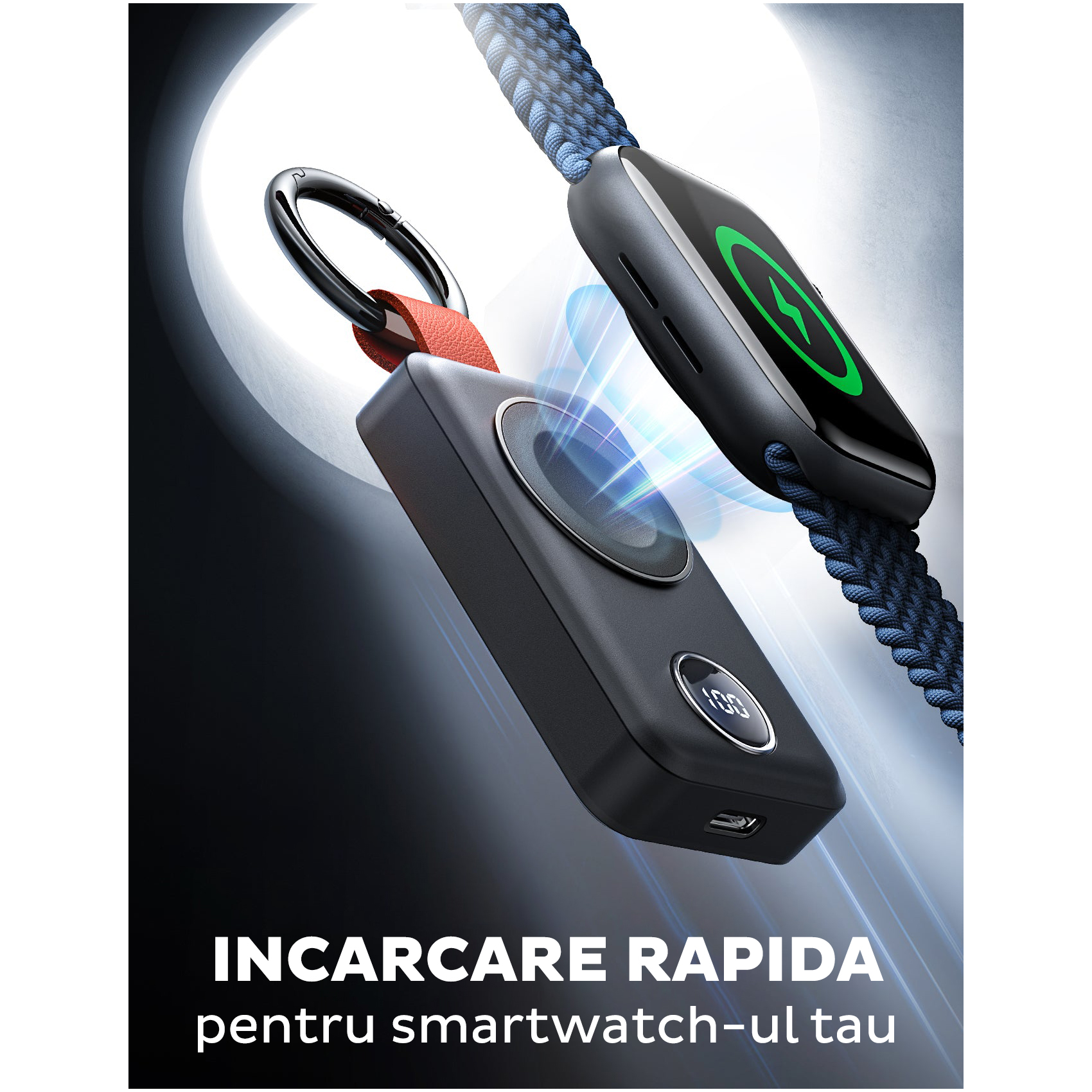 Baterie externa cu incarcare wireless Joyroom JR-WQW01, compatibila cu toate seriile Apple Watch, 3W, Qi Charging, 2000 mAh, Negru