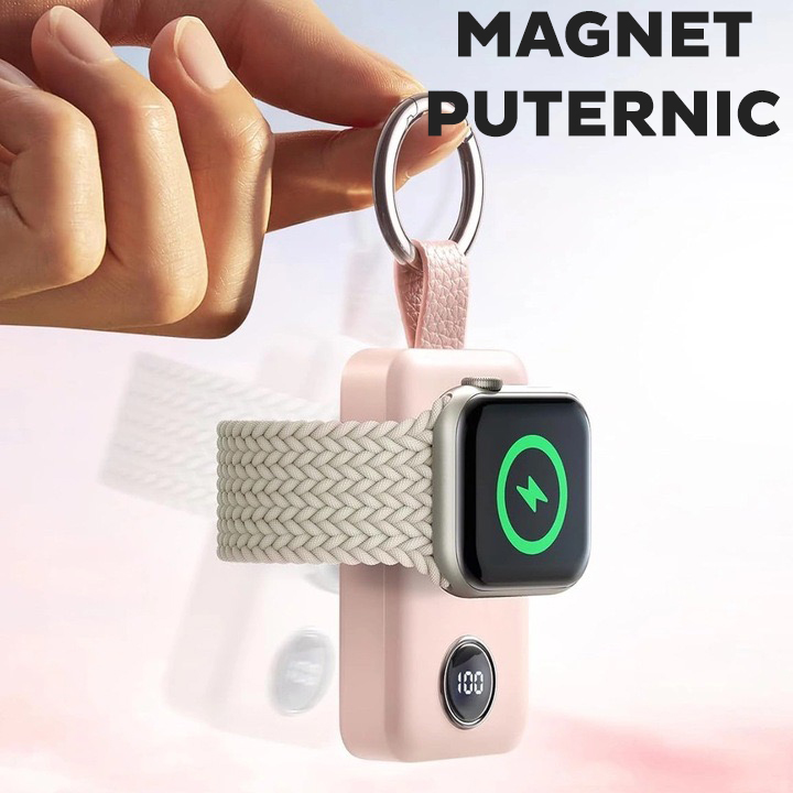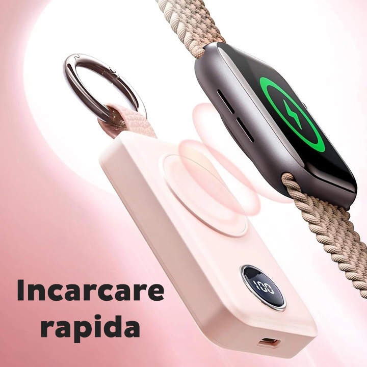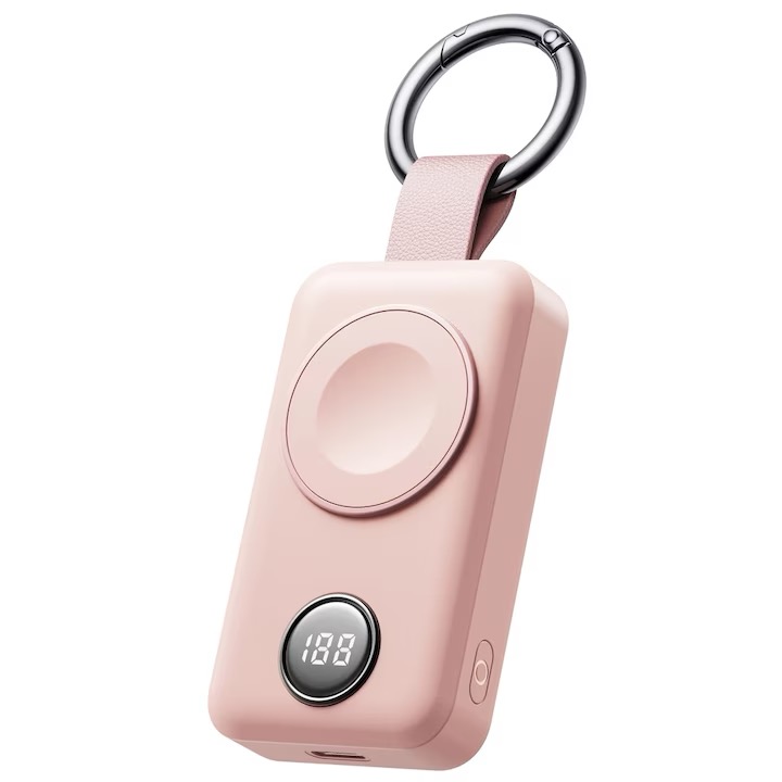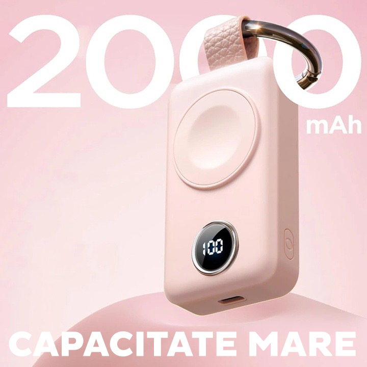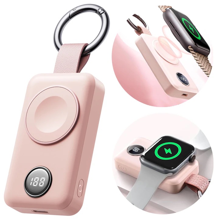 Baterie externa cu incarcare wireless Joyroom JR-WQW01, compatibila cu toate seriile Apple Watch, 3W, Qi Charging, 2000 mAh, Roz