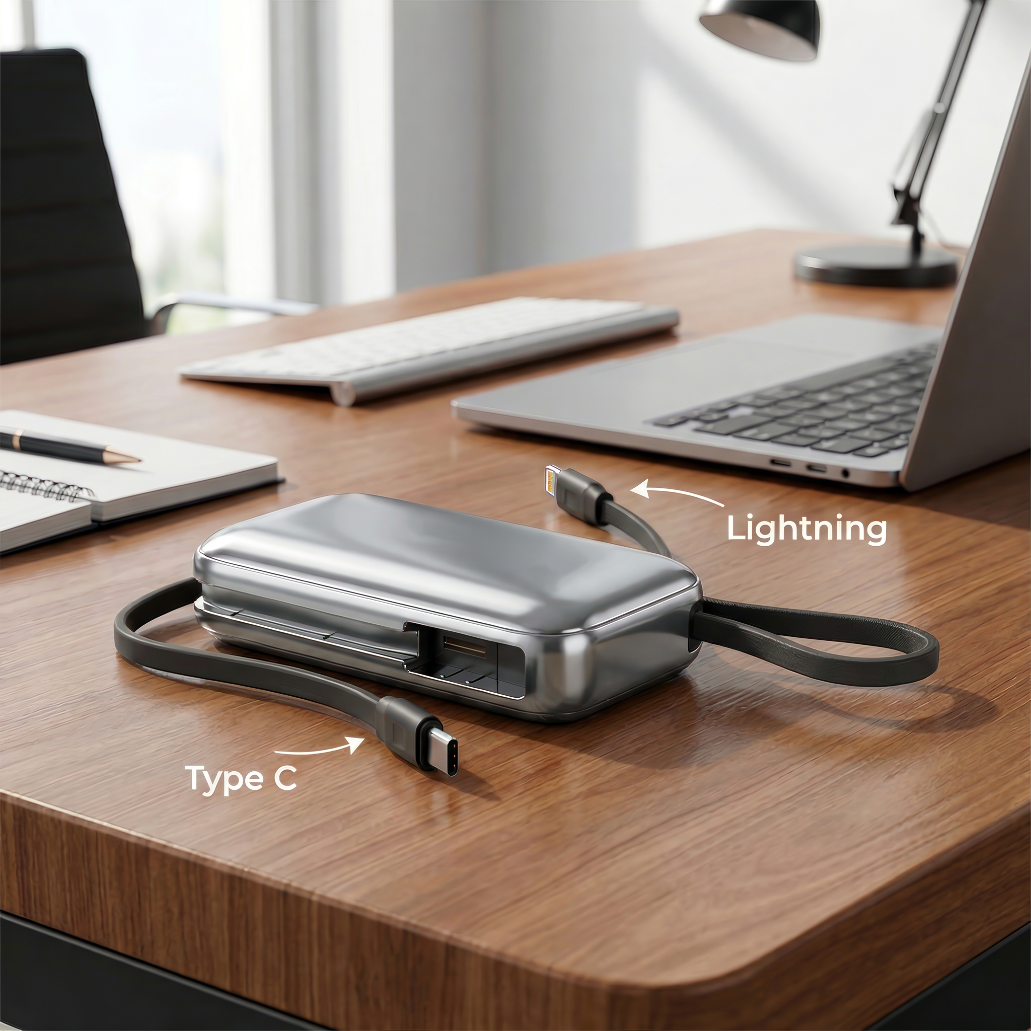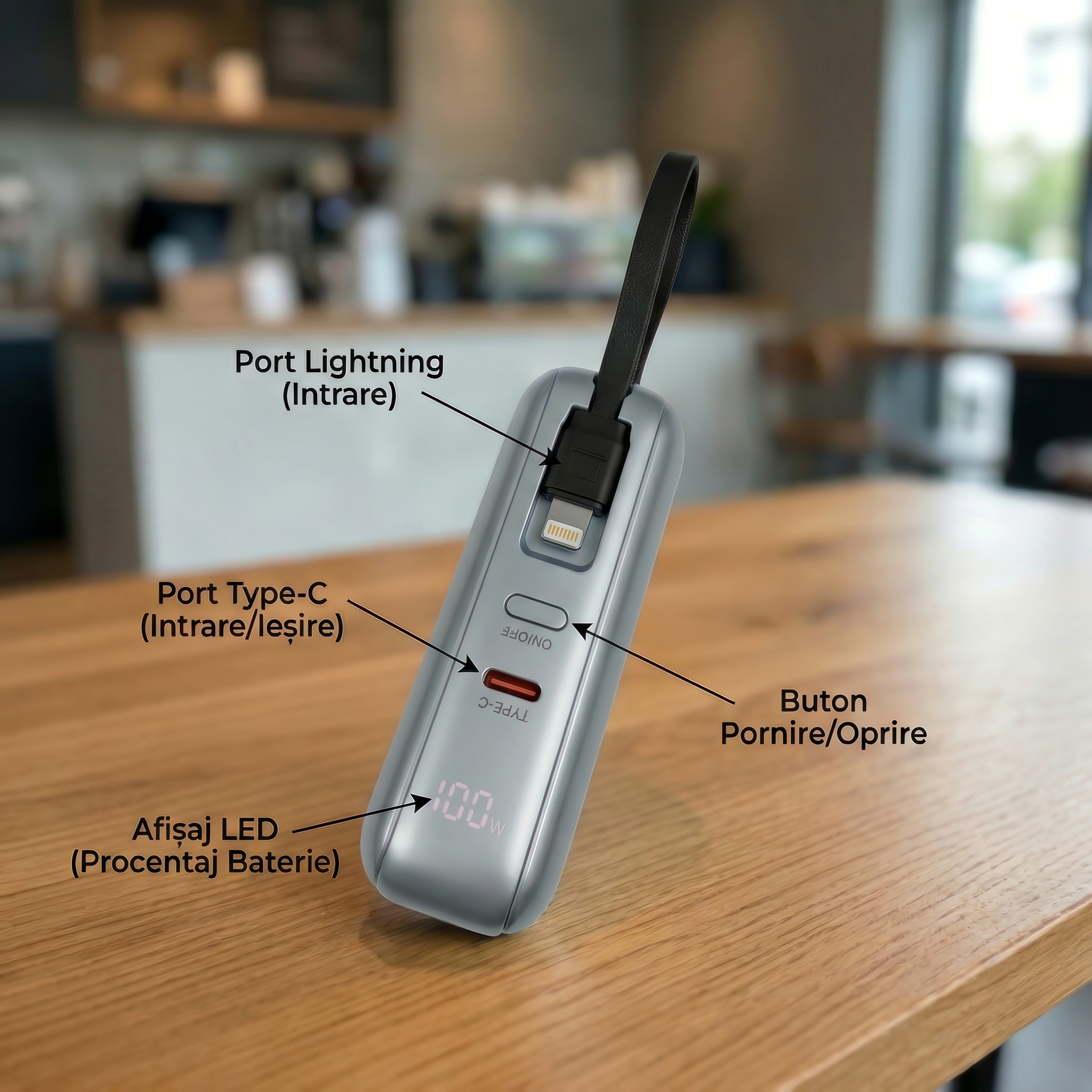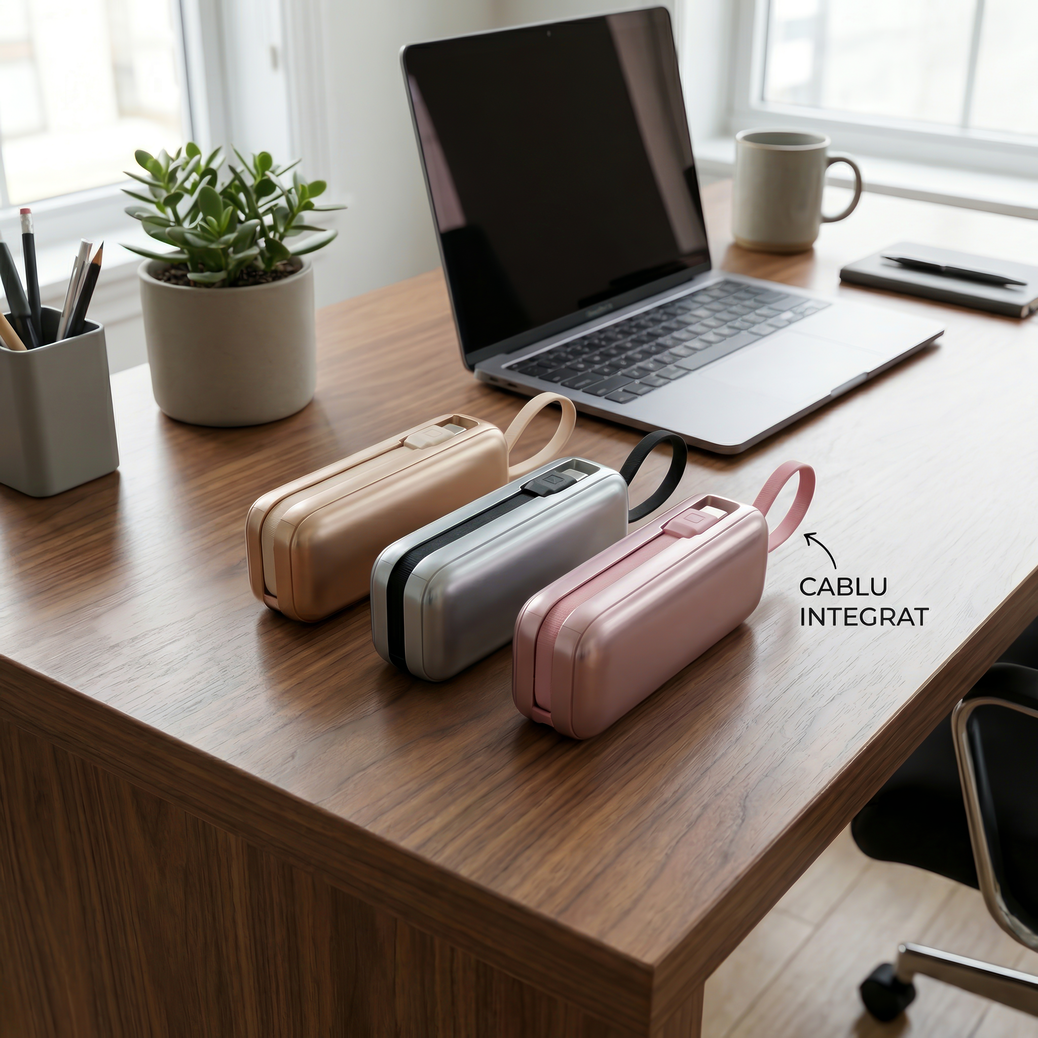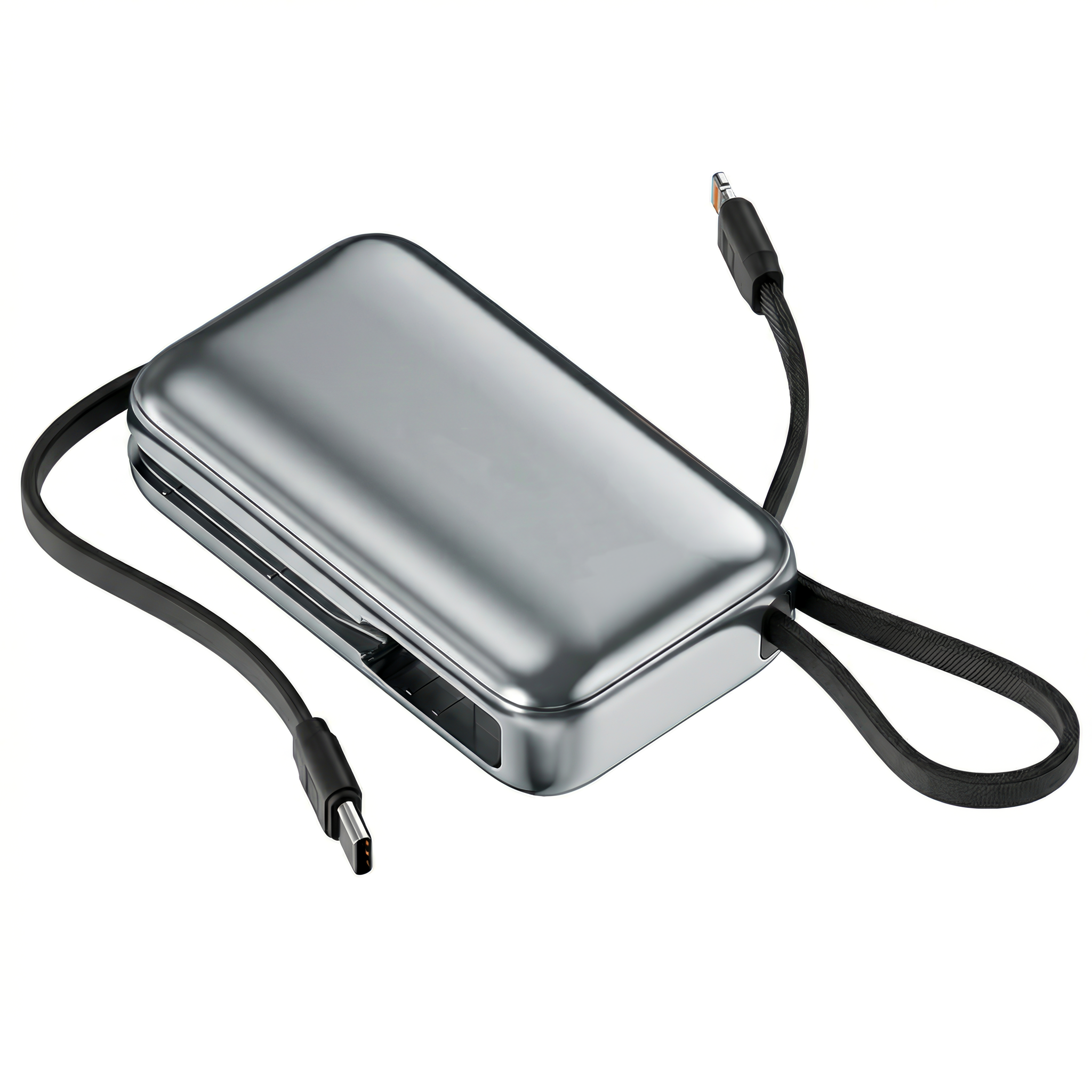 Aceasta baterie externa de 10000mAh este conceputa pentru incarcare rapida si eficienta in deplasare, oferind suport pentru tehnologii moderne de incarcare si cabluri integrate pentru un plus de confort.