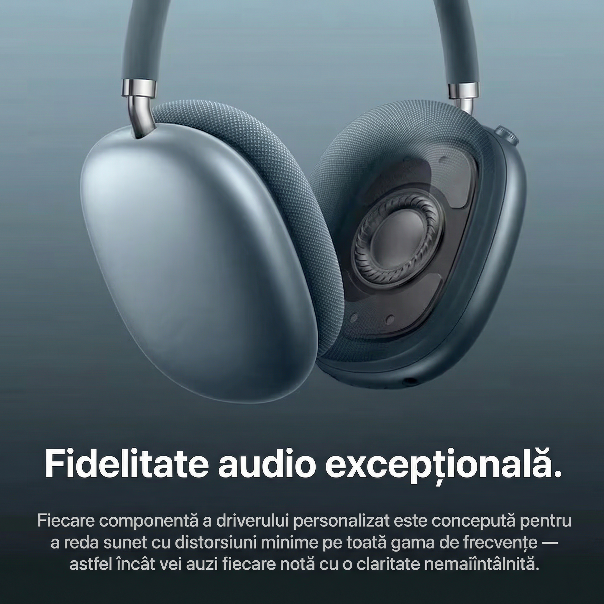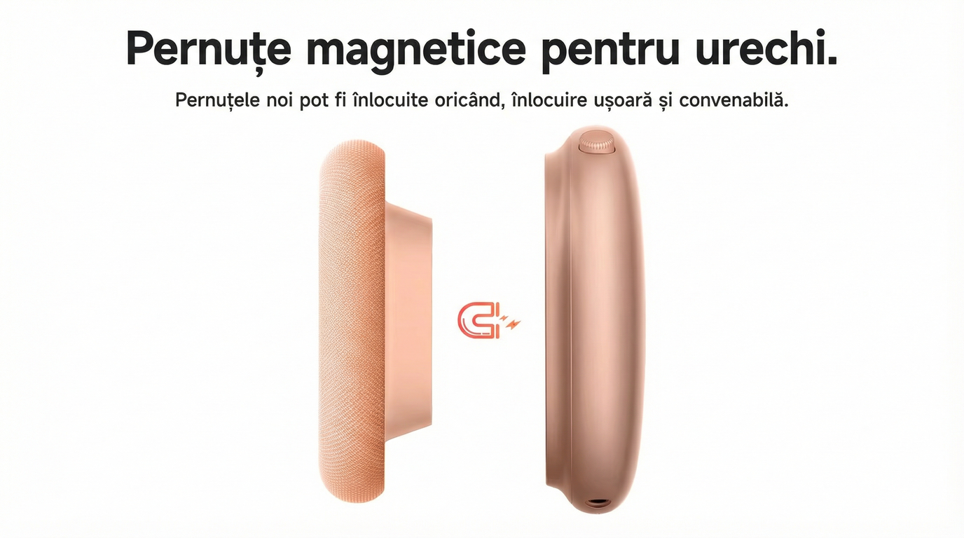 • Design over-ear ce contribuie la izolarea pasiva a sunetului.