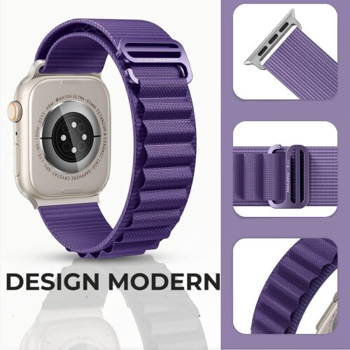Curea Daden® textil Nylon este compatibila cu Apple Watch seria 1/2/3/4/5/6/7/8/SE/Ultra si se regaseste in doua marimi (38/40/41mm si 42/44/45/49mm).
