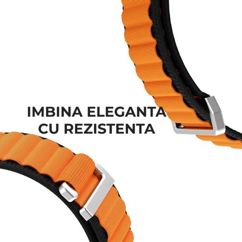 Curea Daden® textil Nylon, Compatibila cu Apple Watch 4 /5/6/7/8/SE/Ultra (42 / 44 / 45 / 49 MM), Portocaliu/Negru