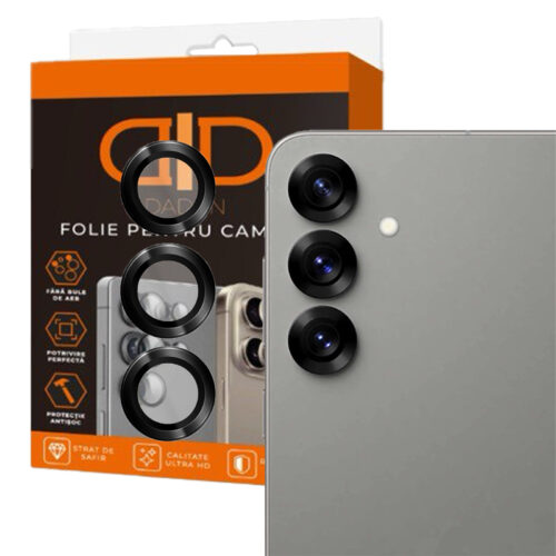 Folie Camera DaDen® din sticla pentru Samsung S25 Plus, Full Cover, Protectie Profesionala, Ultra Rezistenta, Calitate Premium, Negru