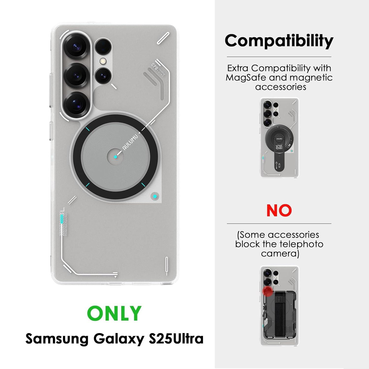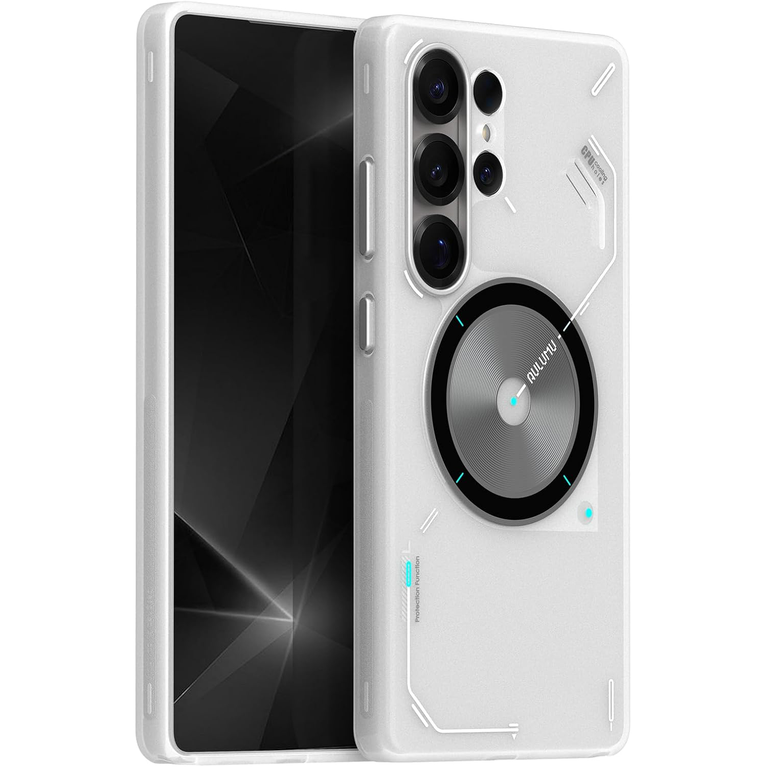 Husa pentru Samsung S25 Ultra, Aulumu Frosted, TPU rezistent, Compatibila MagSafe, Efect fosforescent, Protectie Camera, Butoane aluminiu, Racire activa CoolHyper, Protectie premium, Alb/Transparent