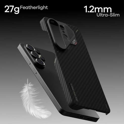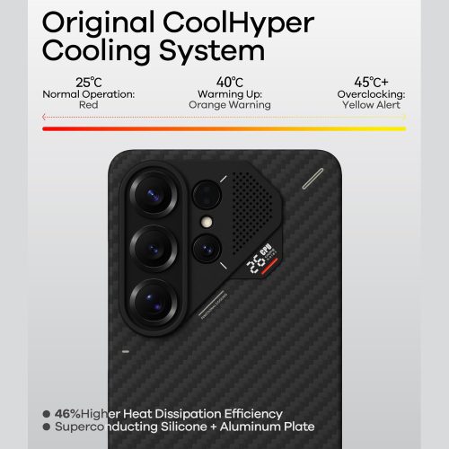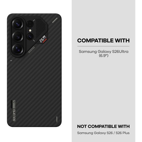 Husa pentru Samsung S26 Ultra, Aulumu din fibra de aramida, Ultra slim, compatibila MagSafe, Racire activa CoolHyper, Cadru camera din Aluminiu, Design rezistent la socuri, Disipare caldura, Protectie premium, Negru