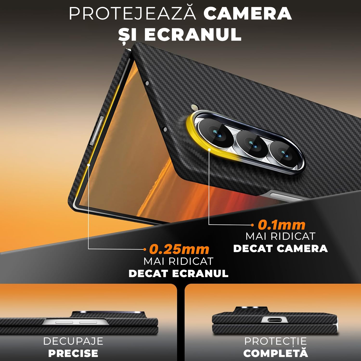 Husa pentru Samsung Z Fold 7 din fibra de aramida/kevlar Daden®, Magsafe intergrat, Protectie Antisoc, Camera Ultra Safe, Negru