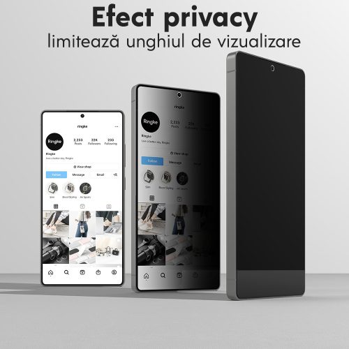 Folia de protectie Ringke Easy Slide Tempered Glass este conceputa pentru cei care vor sa-si protejeze telefonul nu doar de zgarieturi si lovituri, ci si de privirile indiscrete. Datorita tehnologiei privacy, ecranul ramane perfect vizibil din fata, dar devine intunecat atunci cand este privit din lateral, oferindu-ti un plus de confidentialitate in spatiile publice.