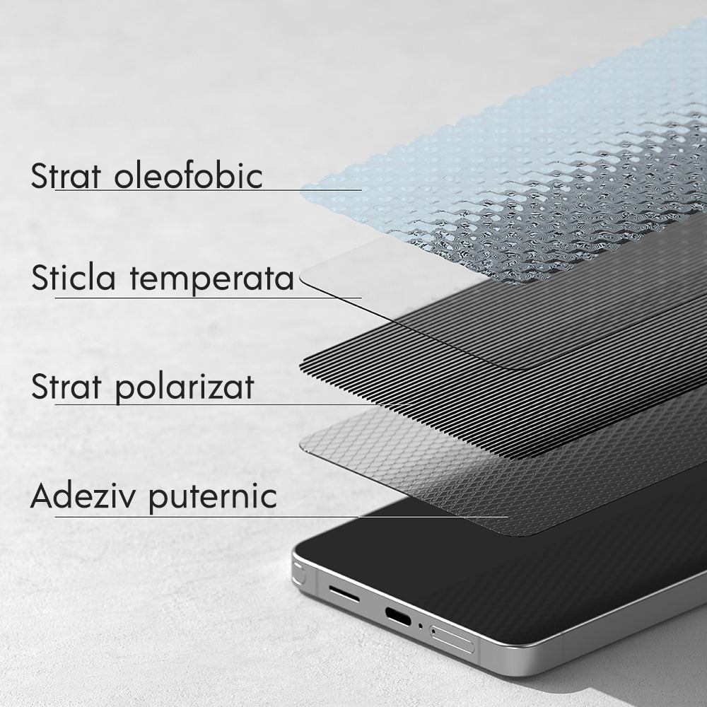Aceasta folie combina protectia avansata cu un nivel ridicat de confort in utilizare. Este solutia ideala pentru cei care lucreaza cu informatii sensibile, calatoresc des sau pur si simplu prefera un plus de discretie atunci cand folosesc telefonul in public.
